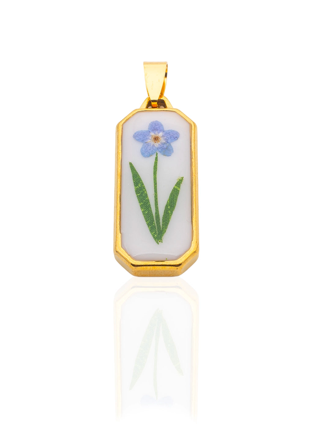 Il fiore vero incastonato dona un tocco naturale e unico a questo gioiello senza tempo, perfetto per ricordare a chi lo indossa di non dimenticare i momenti più preziosi della vita.