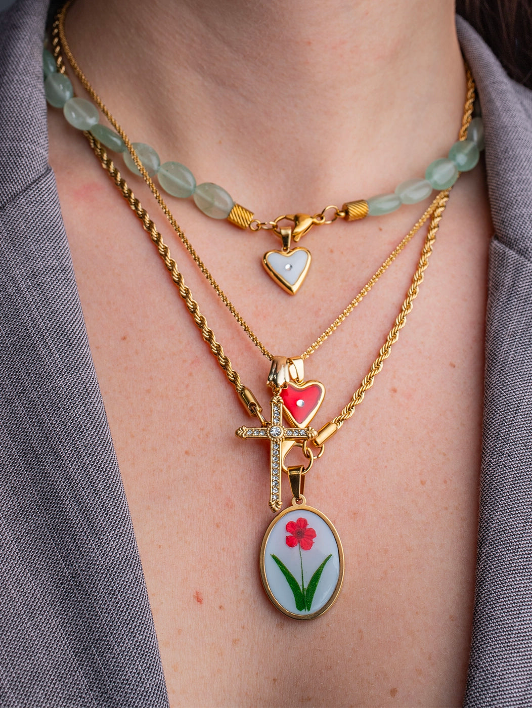 Il collier è realizzato con pietre avventurine verdi e acciaio inossidabile bagnato in oro 18k, garantendo una resistenza eccezionale.