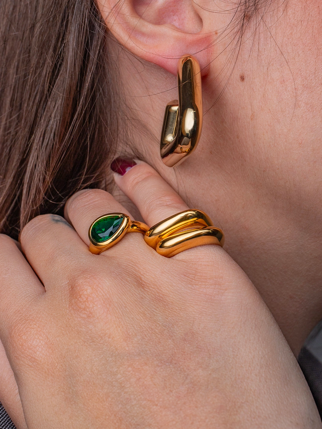 Gli orecchini Bold a forma triangolare sono un vero statement piece: il design geometrico e pulito incontra la brillantezza dell’acciaio inossidabile 316L placcato oro, per un look moderno, essenziale e di carattere.