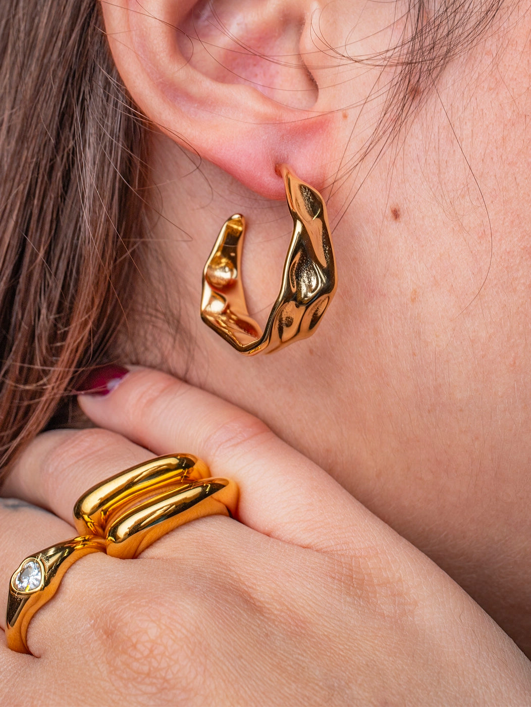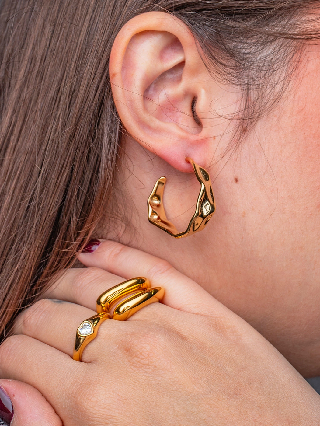 Realizzati in acciaio inossidabile 316L placcato oro, sono pensati per durare nel tempo: resistenti all’acqua, ipoallergenici e anti-scolorimento. Una scelta audace ma versatile, perfetta per dare personalità a qualsiasi look — dal più minimal al più sofisticato.